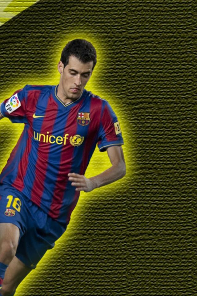 Обои Футболист Барселоны Серхио Бускетс на желтом фоне