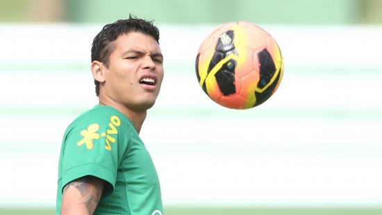 Обои ПСЖ Тиаго Силва смотрит на мяч