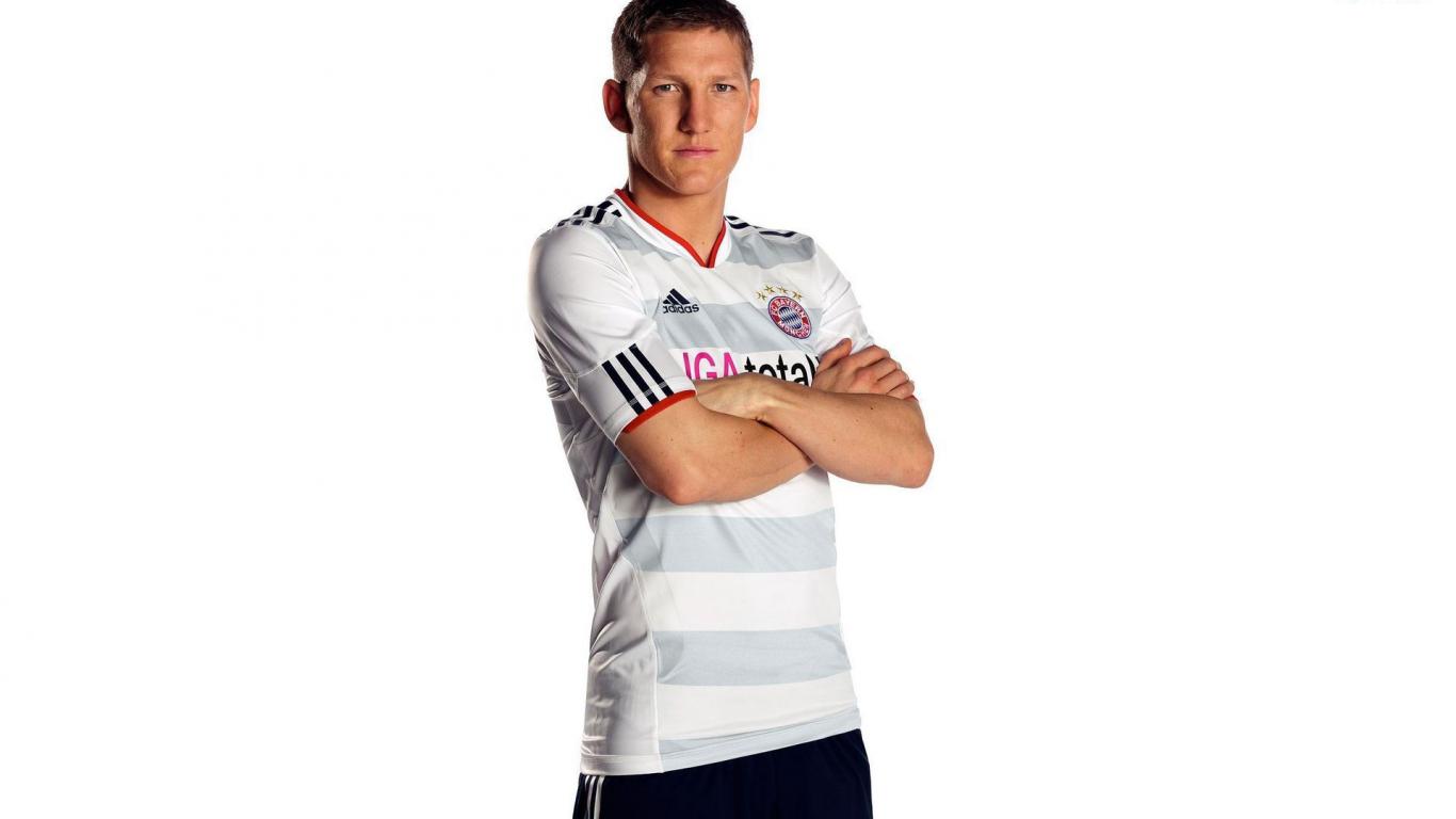 Обои Футболист Баварии Бастиана Швайнштайгера на белом фоне