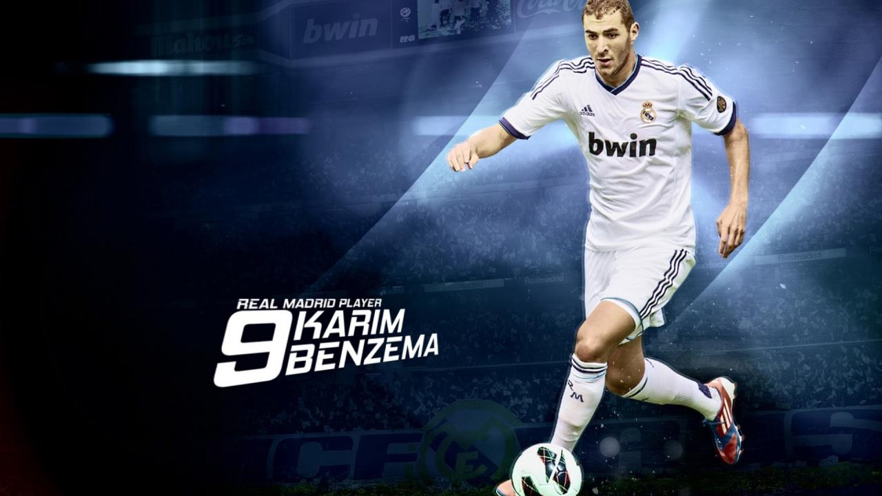 Обои Реал Мадрид Карим Бензема на синем фоне