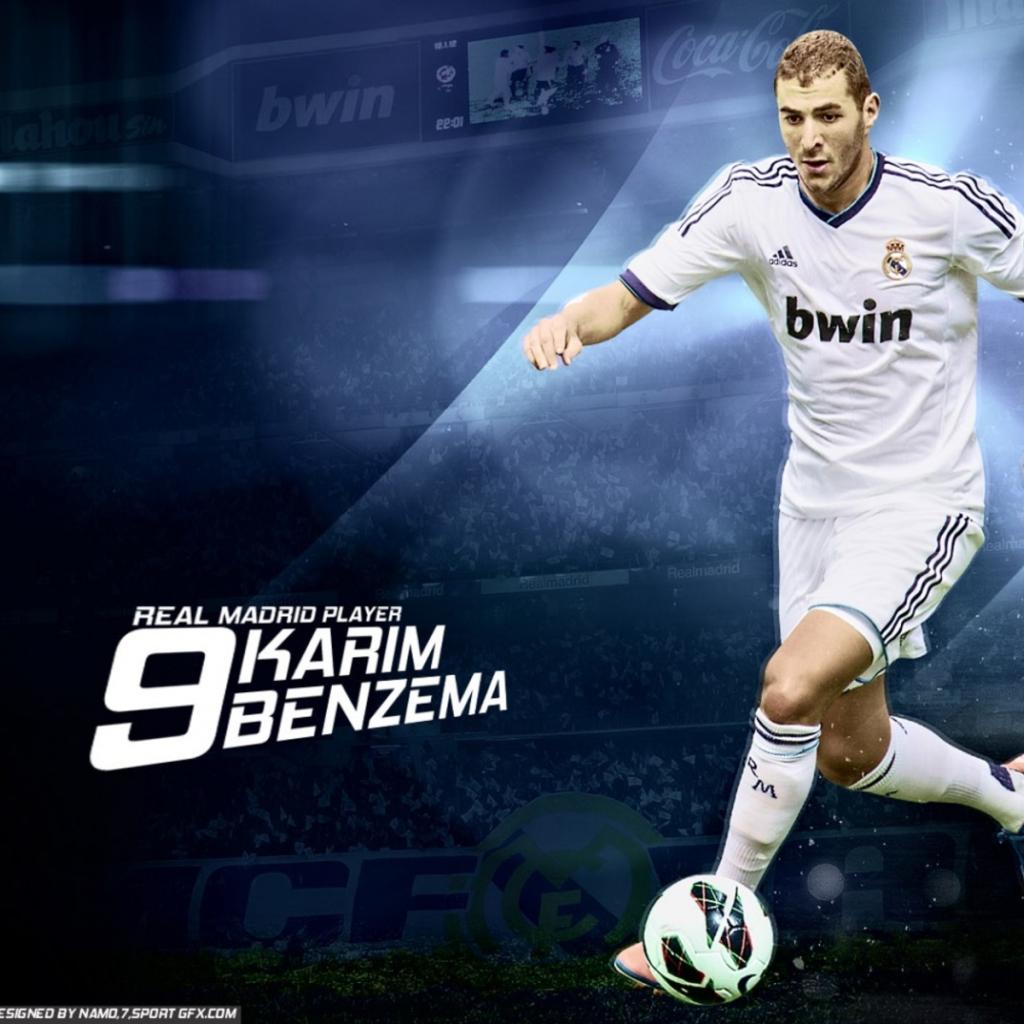 Обои Реал Мадрид Карим Бензема на синем фоне