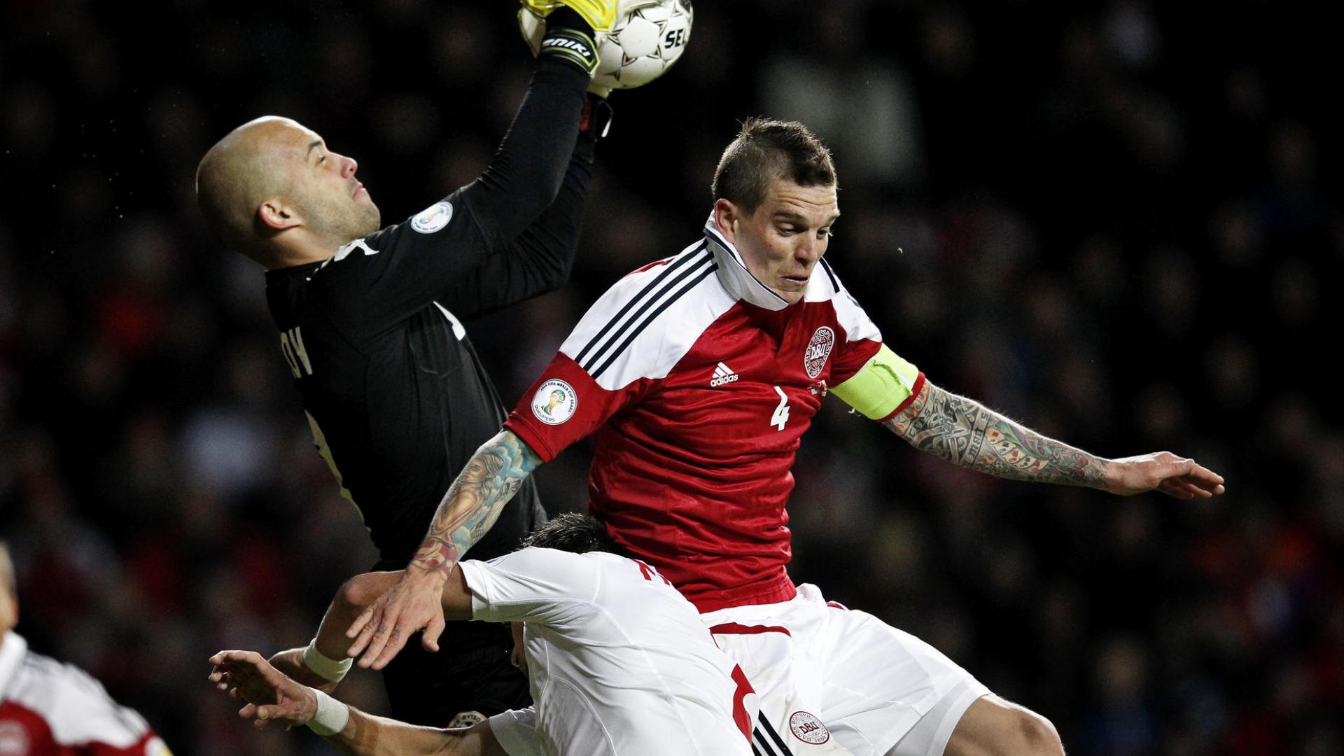 Обои Игрок Ливерпуля Даниэль Аггер бьет мяч