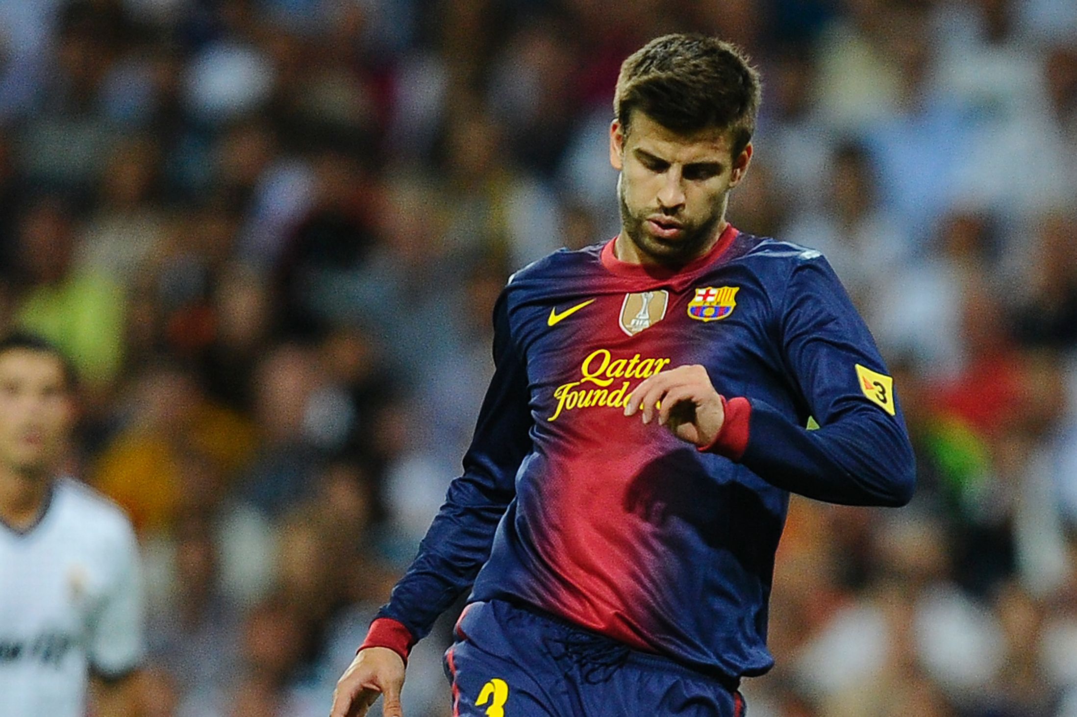 Обои Игрок Барселоны Херард Пике забирает мяч