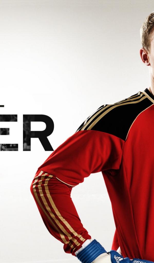 Обои Футболист Баварии Мануэль Нойер на белом фоне