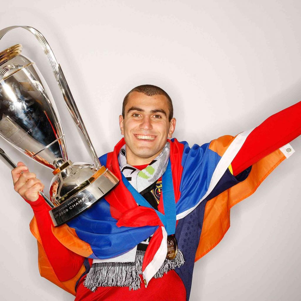 Обои Игрок московского Спартака Юра Мовсисян со своим трофеем