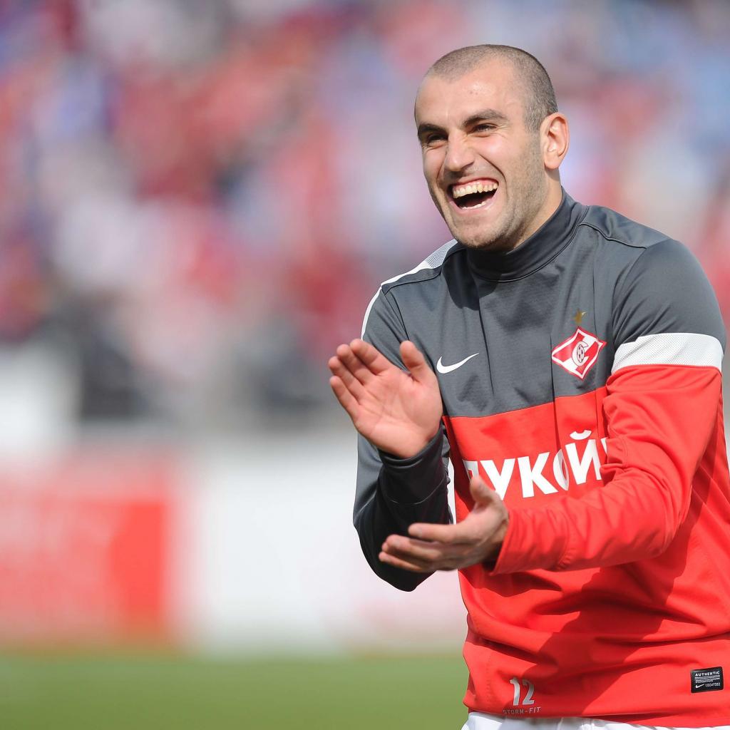 Обои Московский Спартак Юра Мовсисян на красном фоне