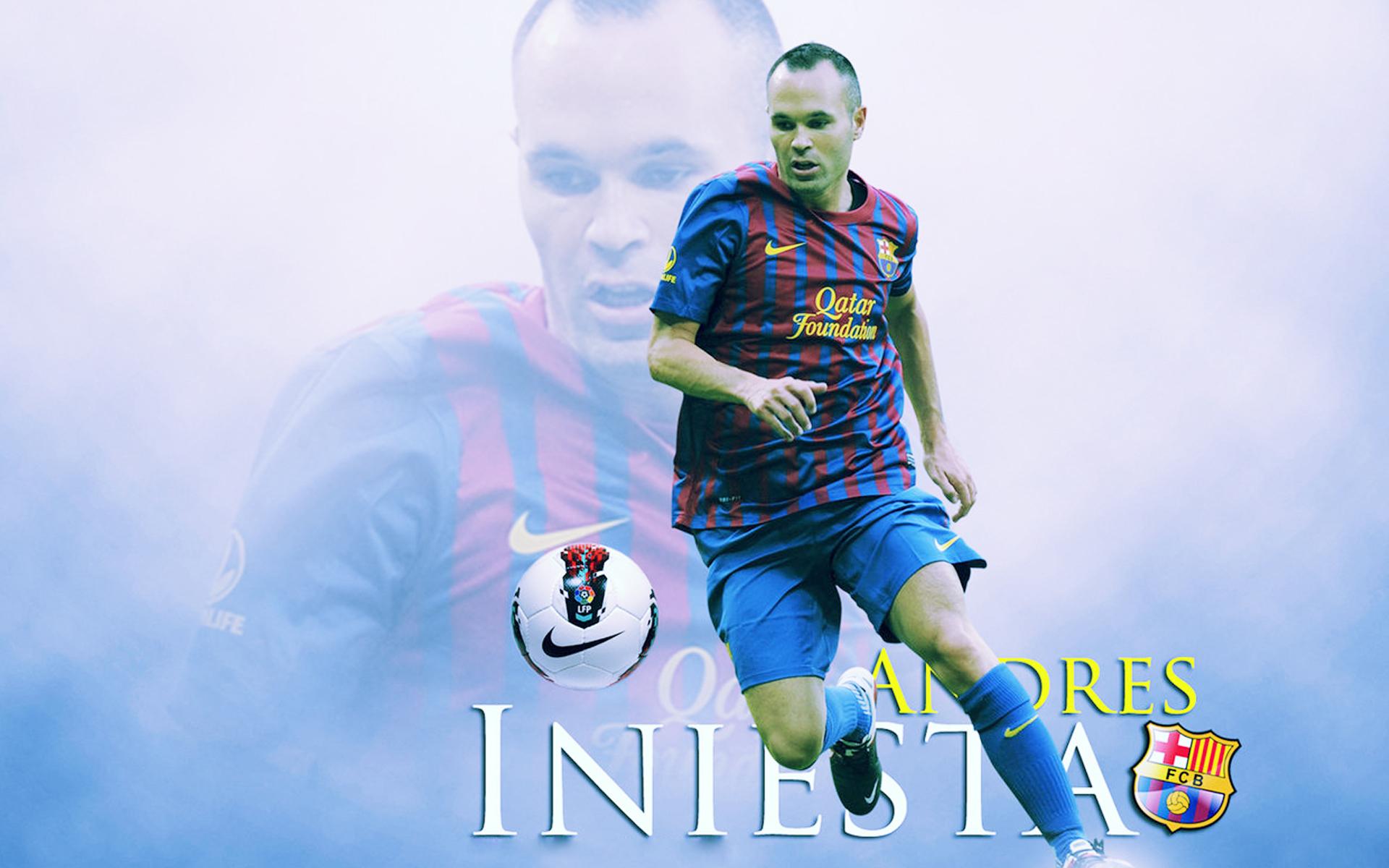 Обои Игрок Барселоны Андрес Иньеста с мячом