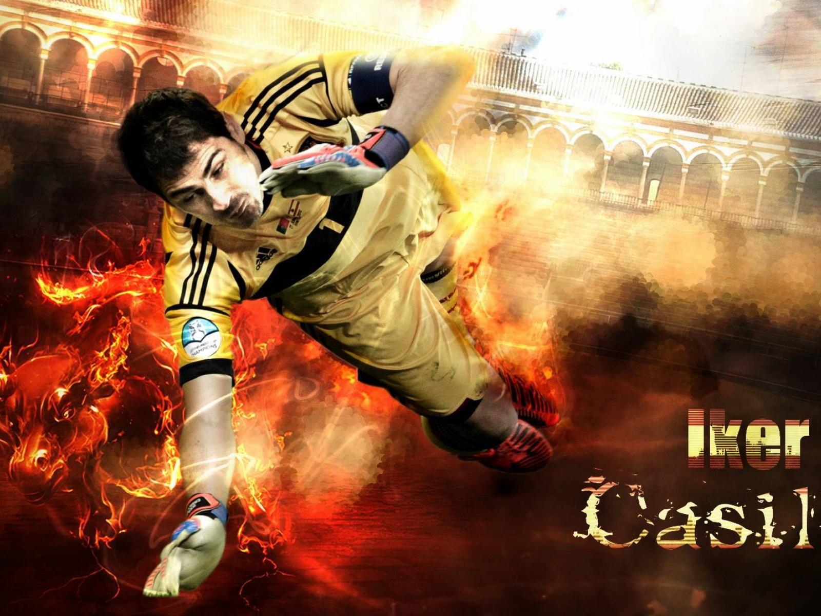 Обои Игрок Реал Мадрида Икер Касильяс ловит мяч