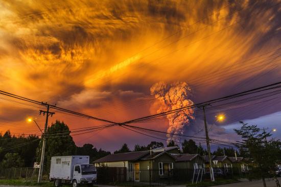 Обои Оранжевое облако над вулканом Кальбуко, Чили