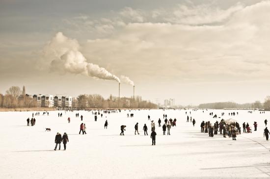 Обои Люди гуляют на замерзшей реке