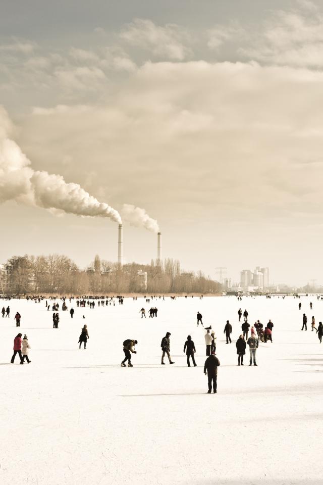 Обои Дети катаются на коньках по замерзшей реке в Нидерландах