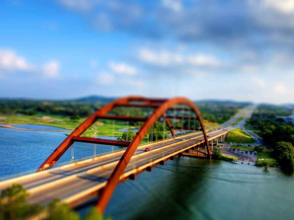 Обои Арочный мост на трассе через реку