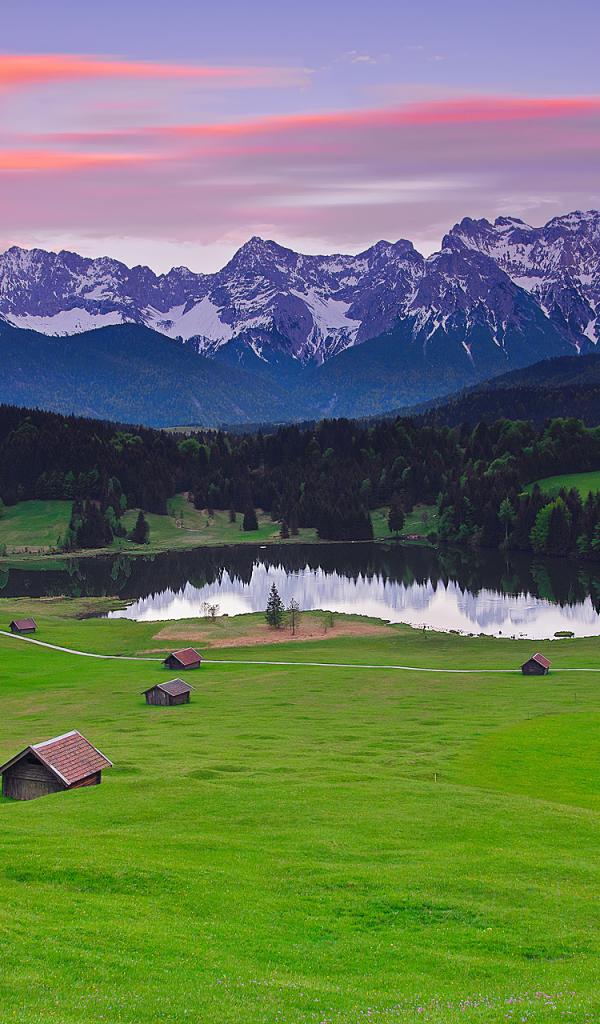 Обои Озеро, Зеленая трава, Дом, Успокаивающие