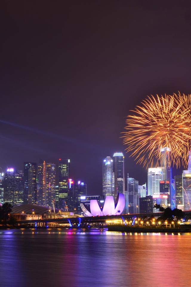 Обои Сингапур, Колесо обозрения, феерверк