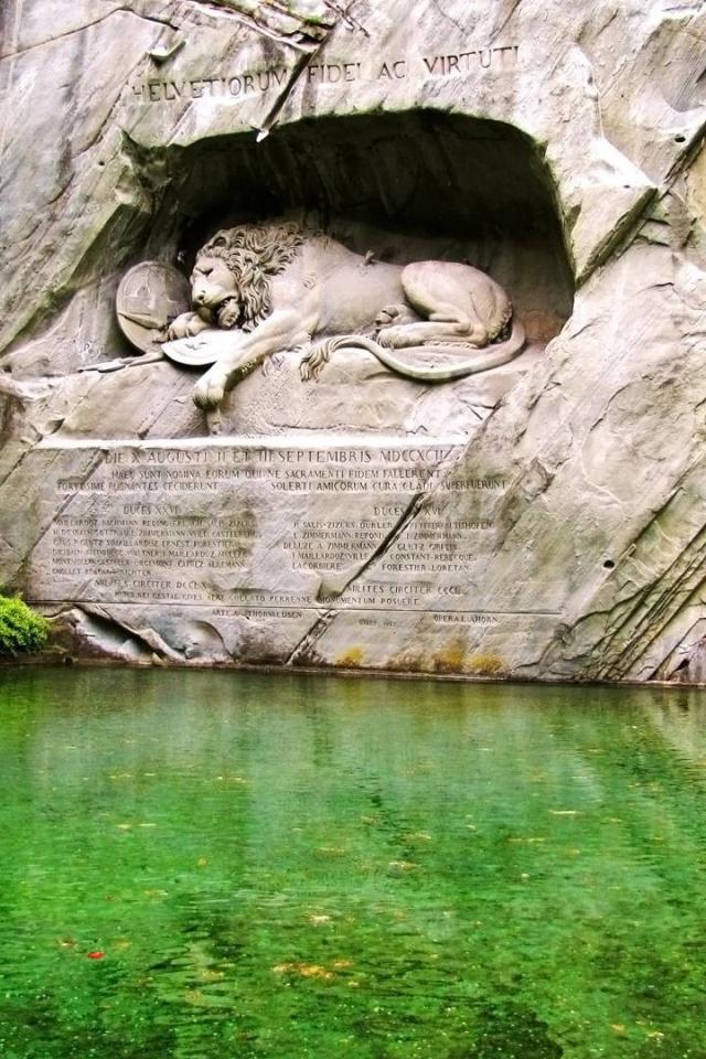 Обои Скульптура льва над водой