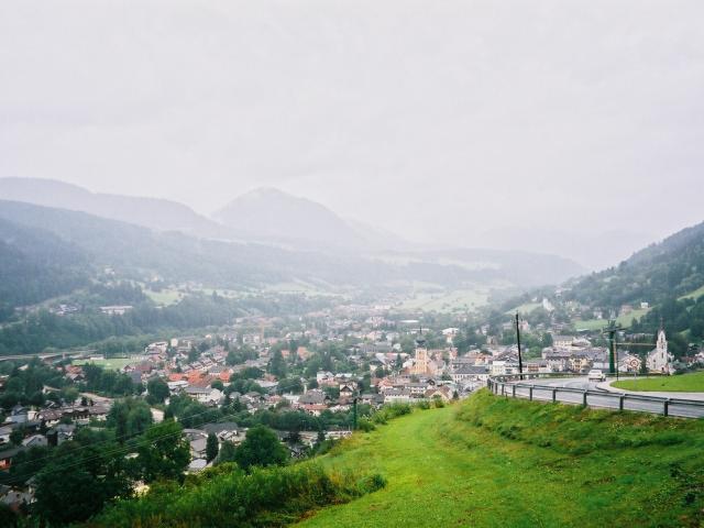 Обои Панорама города на горнолыжном курорте Шладминг, Австрия