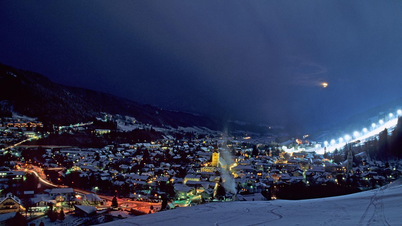 Обои Ночь на горнолыжном курорте Шладминг, Австрия