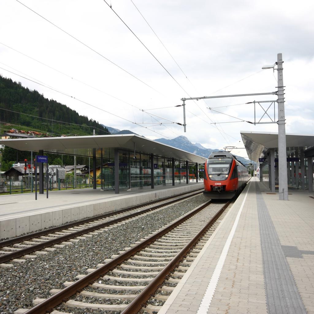 Обои Железнодорожный вокзал на горнолыжном курорте Шладминг, Австрия