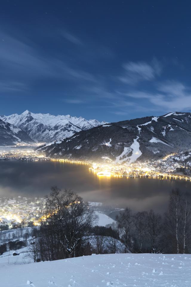 Обои Вечернее сияние на курорте Цель-ам-Зее, Австрия