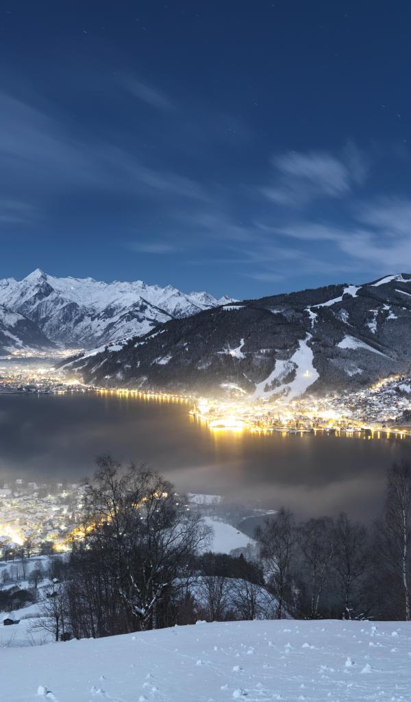 Обои Вечернее сияние на курорте Цель-ам-Зее, Австрия