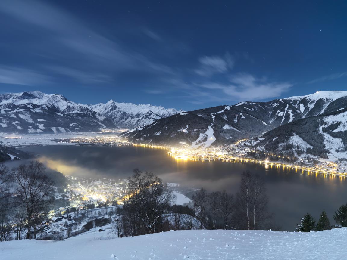 Обои Вечернее сияние на курорте Цель-ам-Зее, Австрия