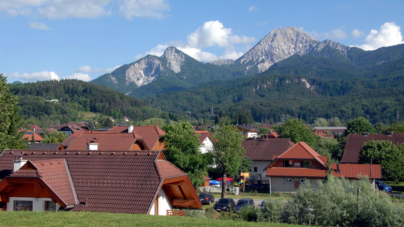 Обои Панорама города на курорте Фаакер-Зее, Австрия
