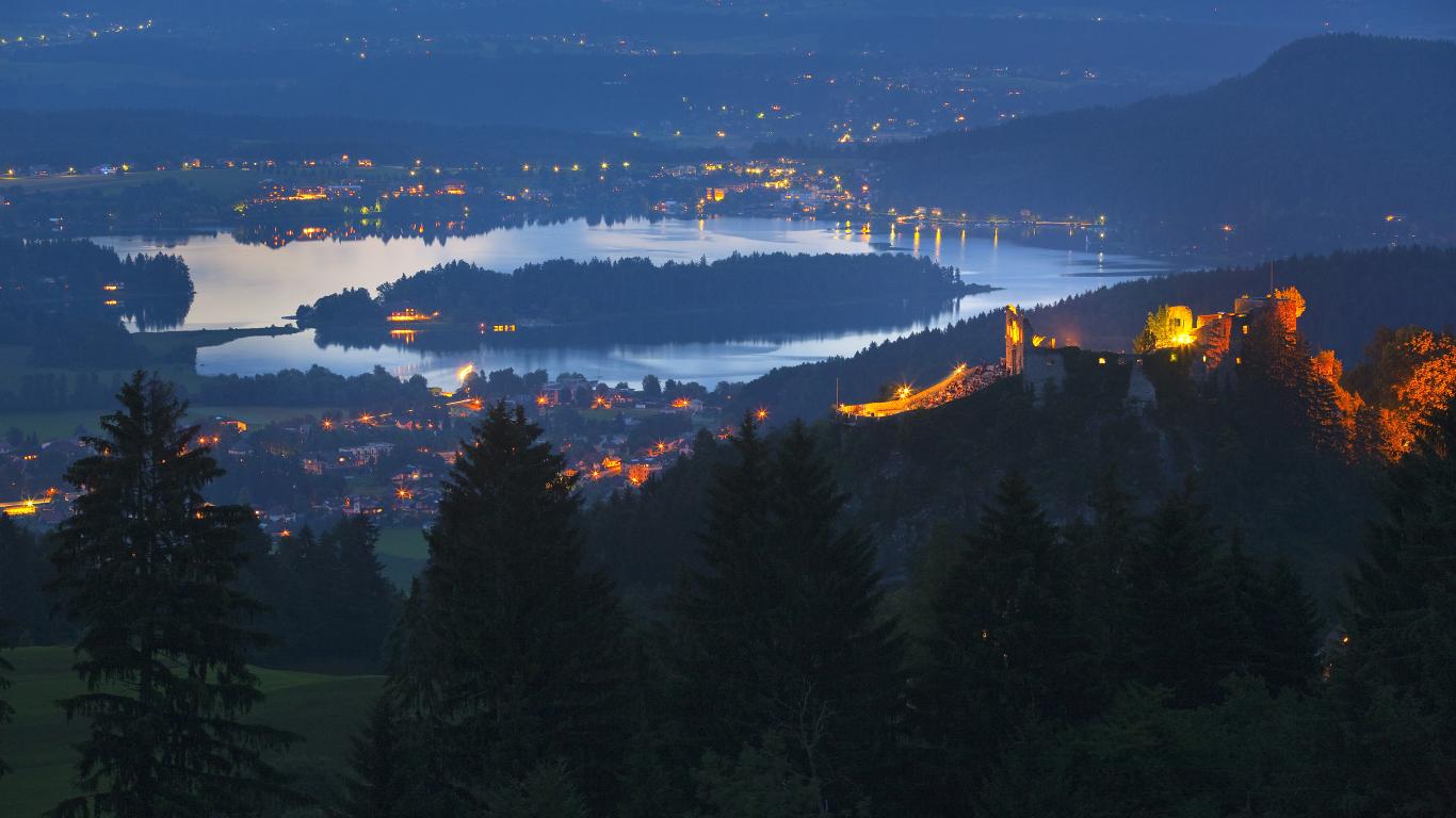Обои Ночные огни на курорте Фаакер-Зее, Австрия