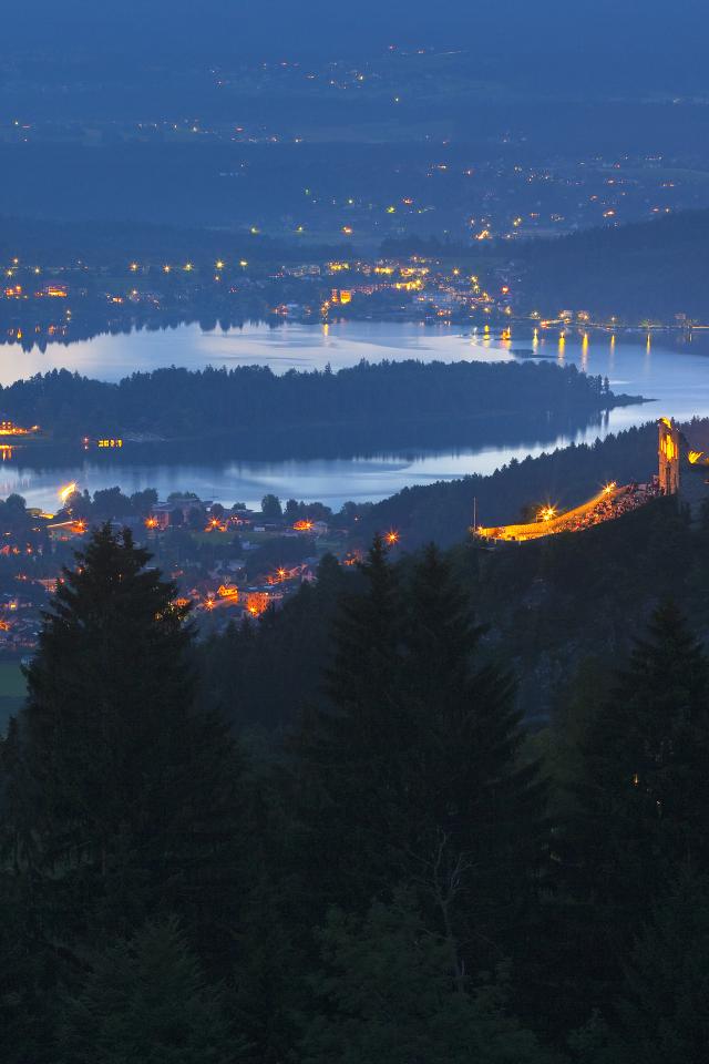 Обои Ночные огни на курорте Фаакер-Зее, Австрия