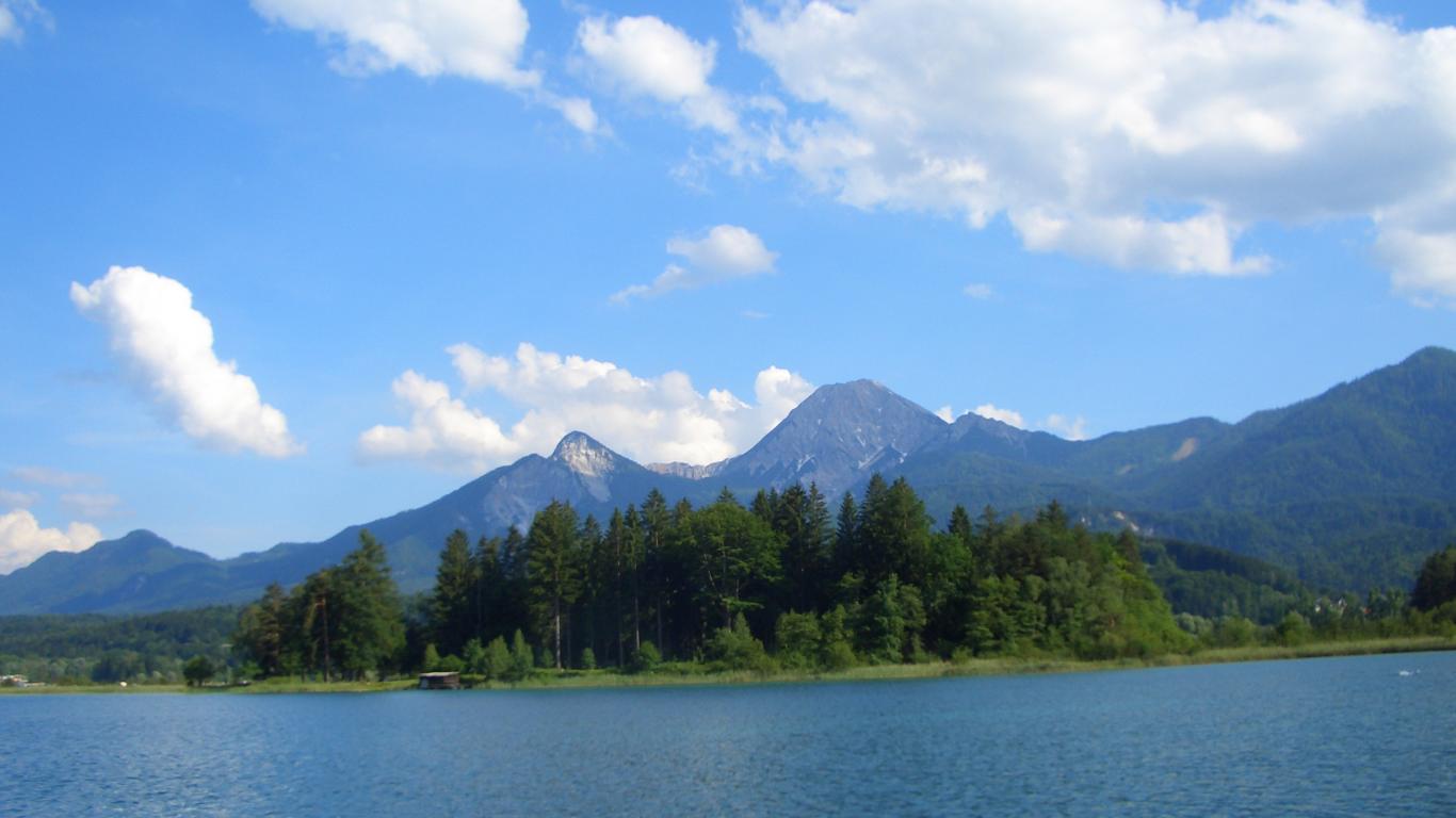 Обои Деревья на берегу на курорте Фаакер-Зее, Австрия