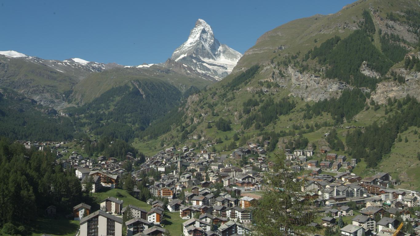 Обои Летняя панорама на горнолыжном курорте Сант Антон, Австрия