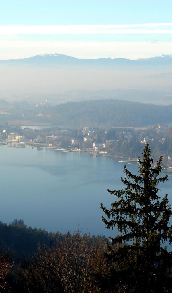 Обои Туман над озером Клопайнер Зее, Австрия