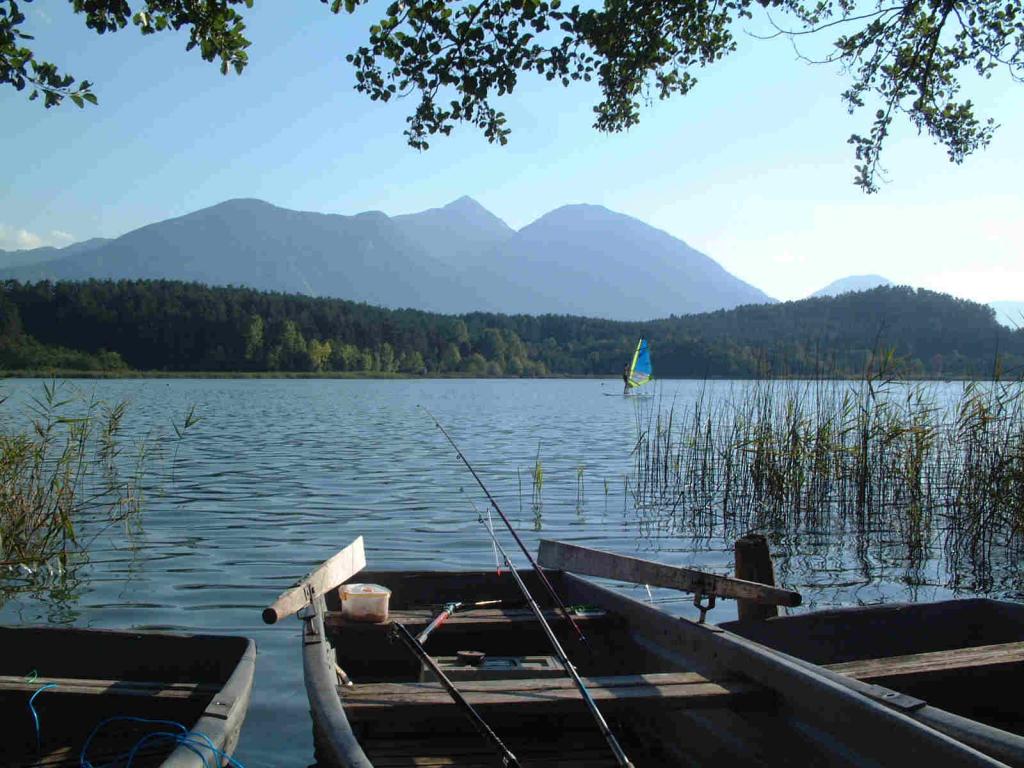 Обои Лодка у берега озера Клопайнер Зее, Австрия