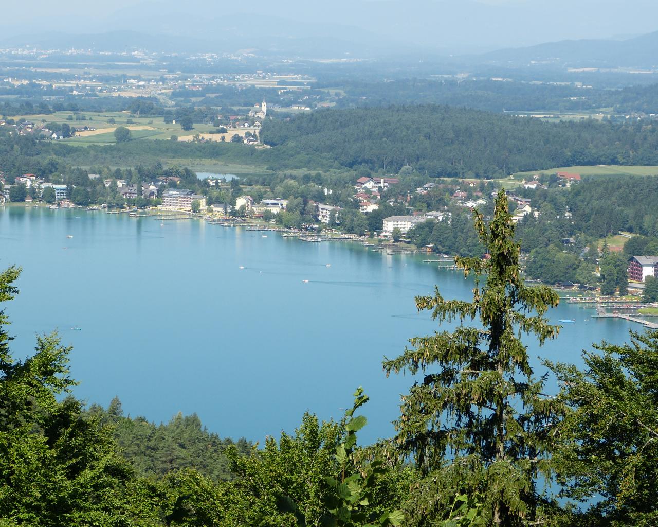 Обои Вид с горы на озеро Клопайнер Зее, Австрия