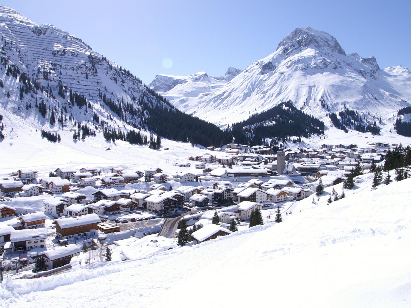 Обои Панорама города на горнолыжном курорте Лех, Австрия