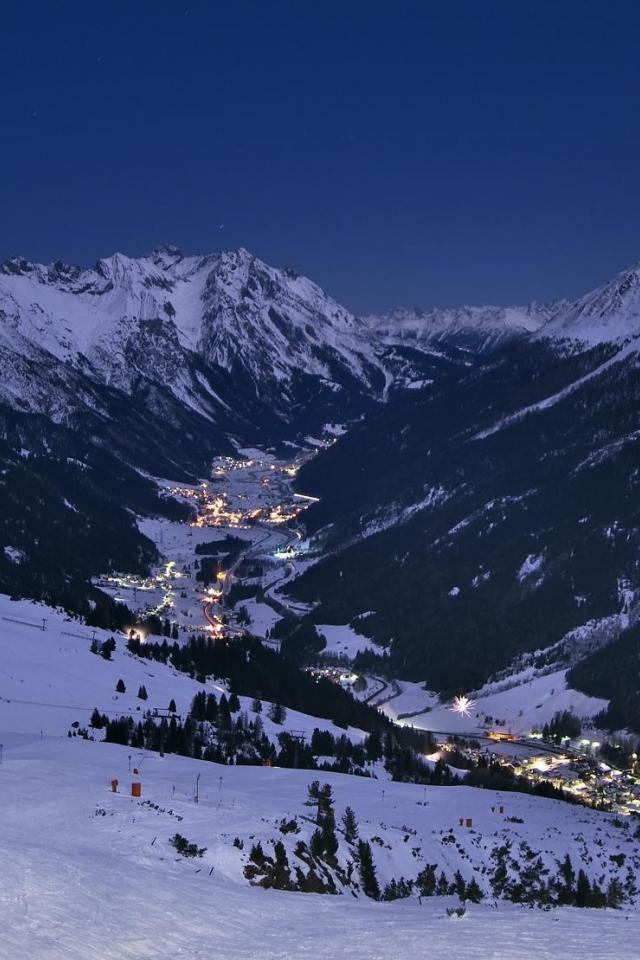 Обои Ночные огни на горнолыжном курорте Лех, Австрия