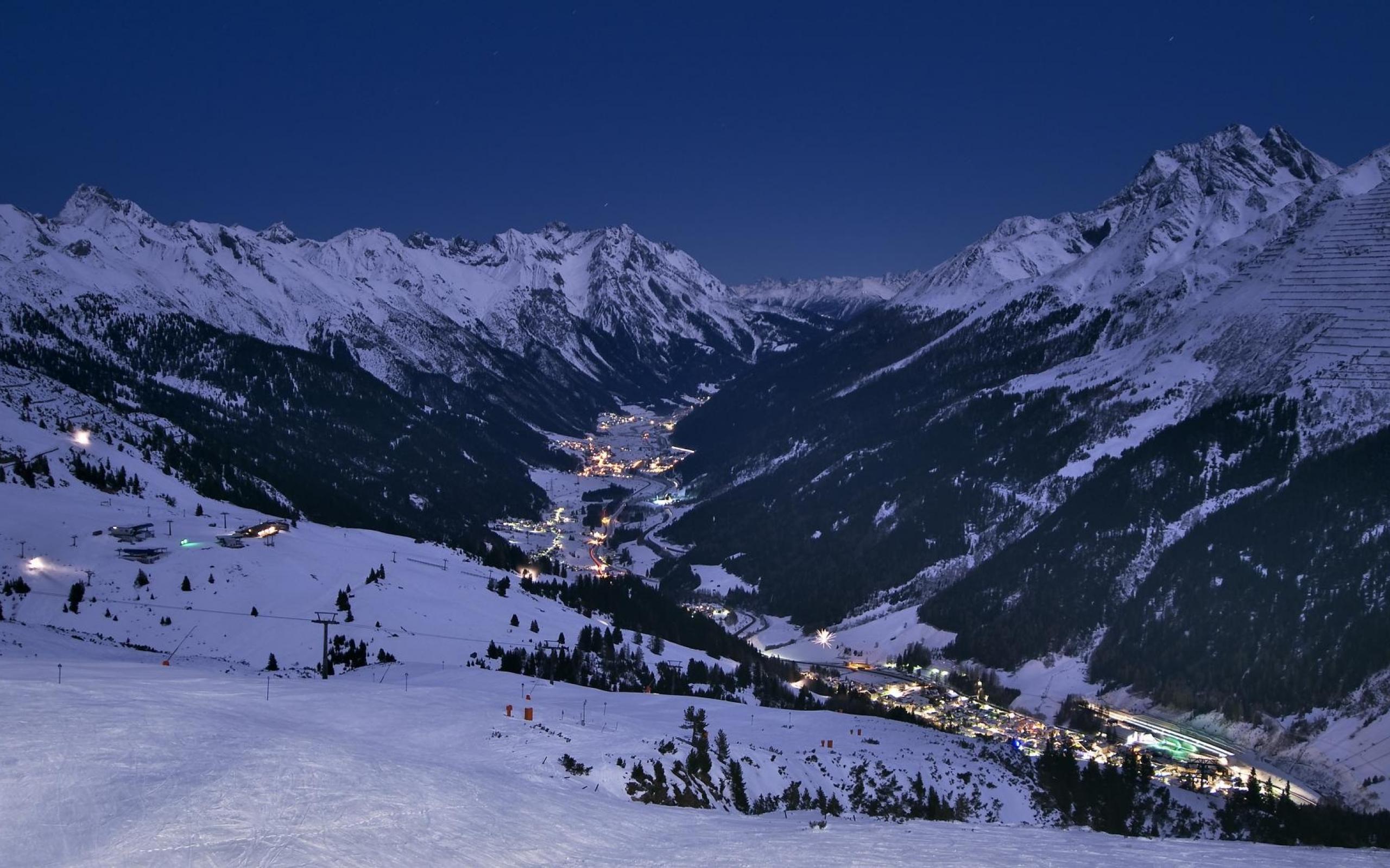 Обои Ночные огни на горнолыжном курорте Лех, Австрия
