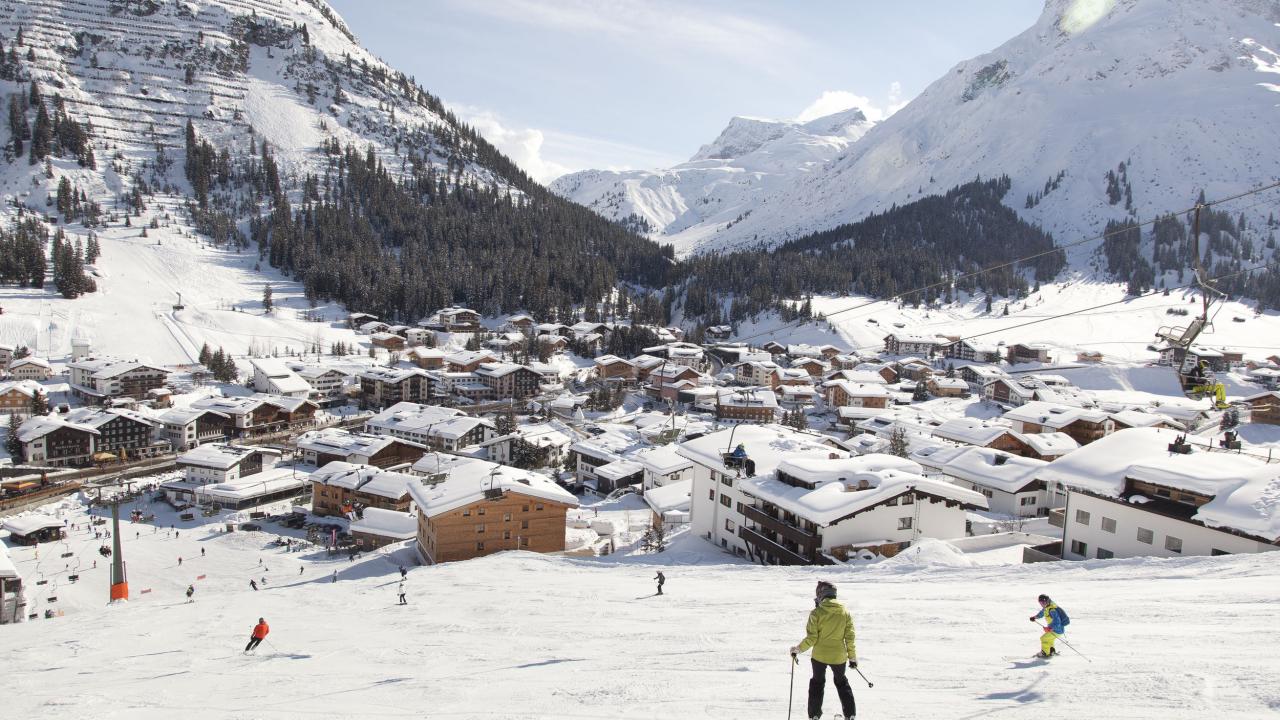 Обои Зимний пейзаж на горнолыжном курорте Лех, Австрия