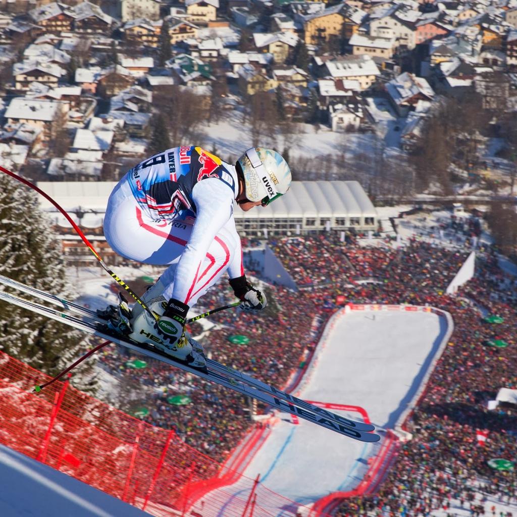 Обои Лыжник на трассе на курорте Китцбюэль, Австрия