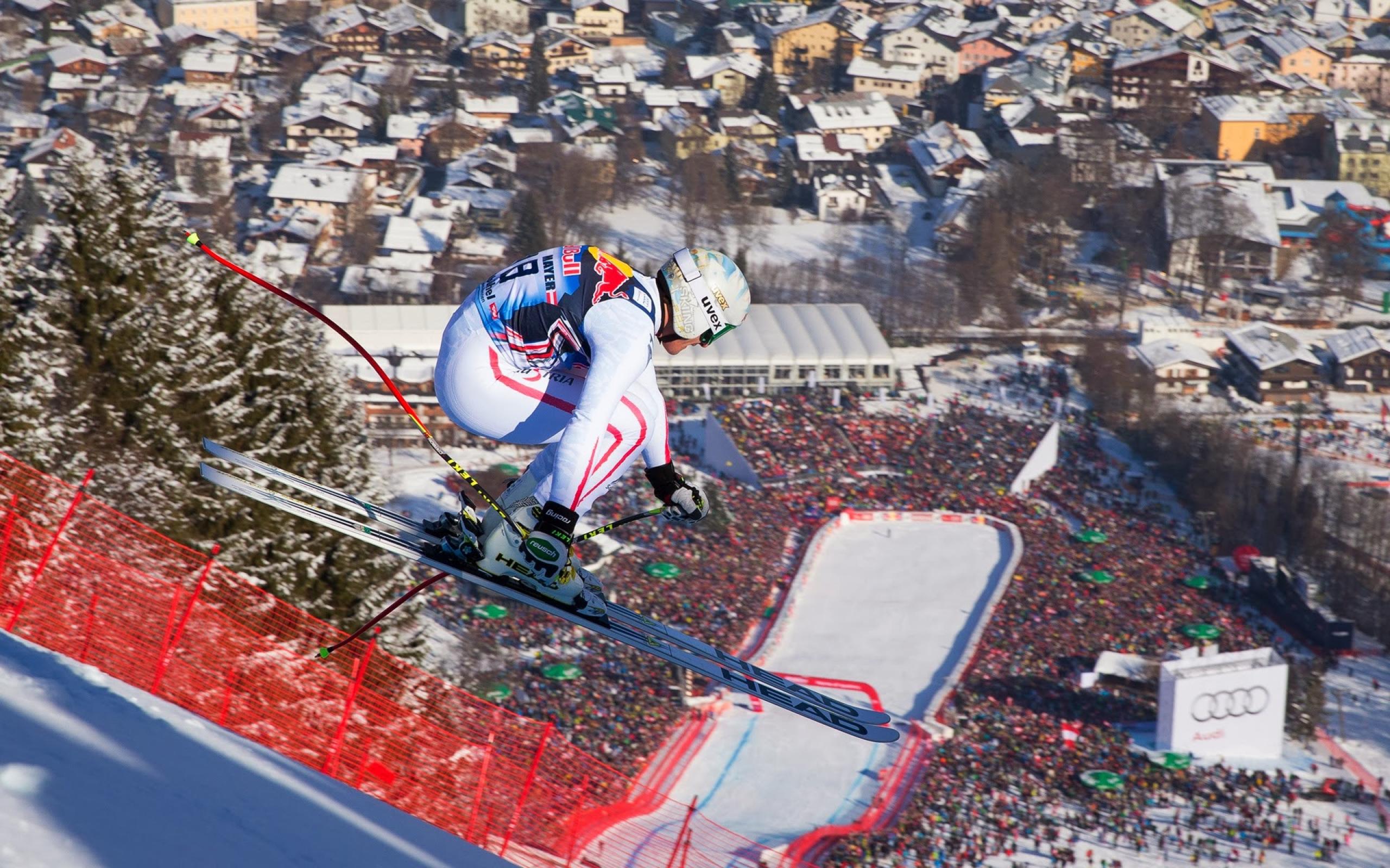 Обои Лыжник на трассе на курорте Китцбюэль, Австрия