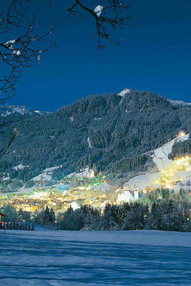Обои Вечерние огни на курорте Китцбюэль, Австрия