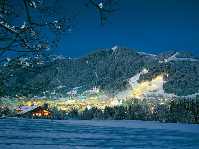 Обои Вечерние огни на курорте Китцбюэль, Австрия