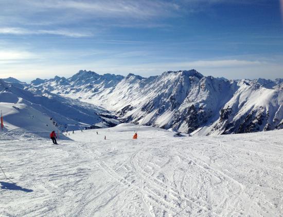 Обои Спуск на лыжах на горнолыжном курорте Лез Арк, Франция