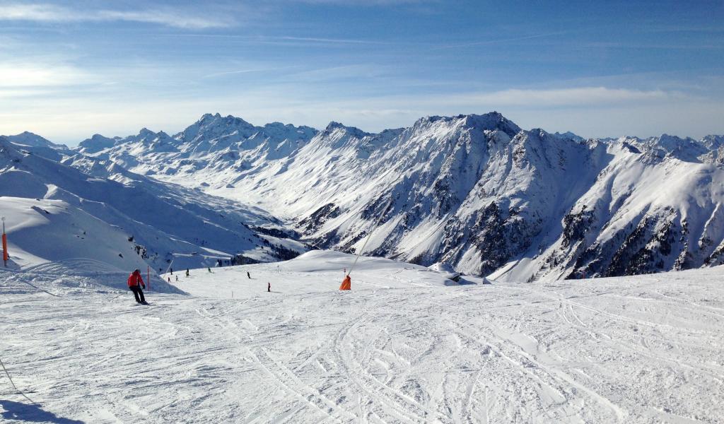 Обои Спуск на лыжах на горнолыжном курорте Лез Арк, Франция