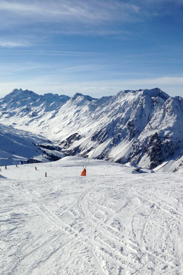 Обои Спуск на лыжах на горнолыжном курорте Лез Арк, Франция