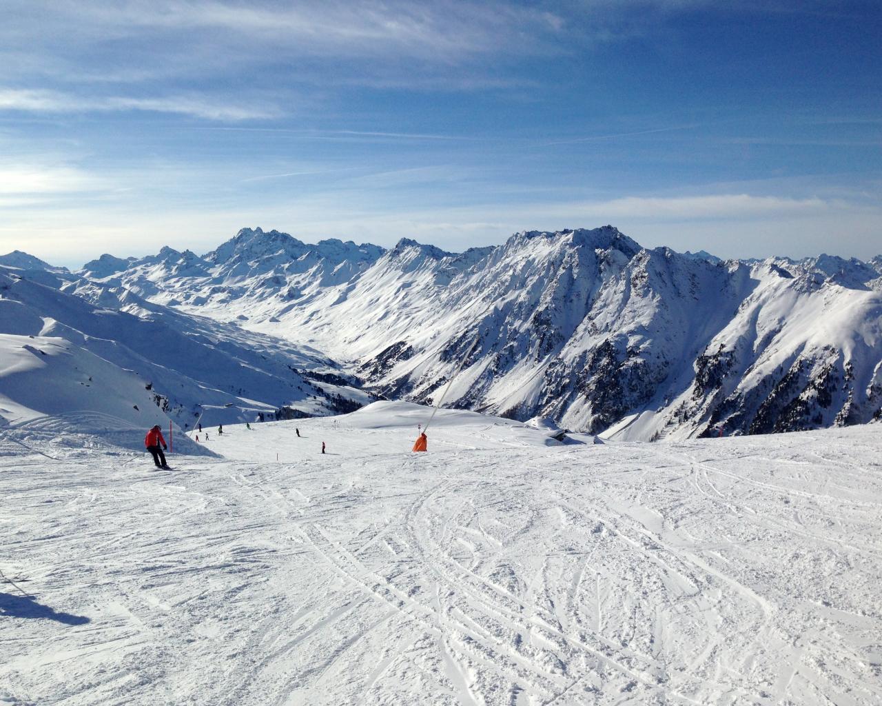 » Обои Спуск на лыжах на горнолыжном курорте Ишгль, Австрия