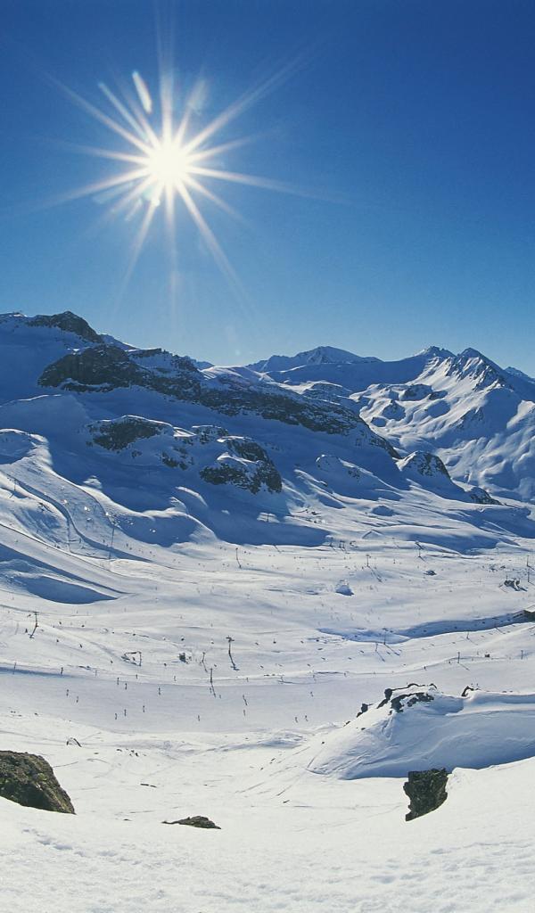 Обои Солнце в горах на горнолыжном курорте Ишгль, Австрия