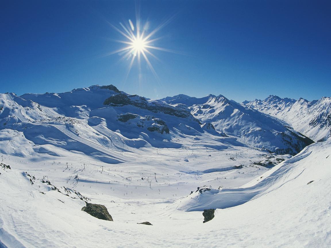 Обои Солнце в горах на горнолыжном курорте Ишгль, Австрия