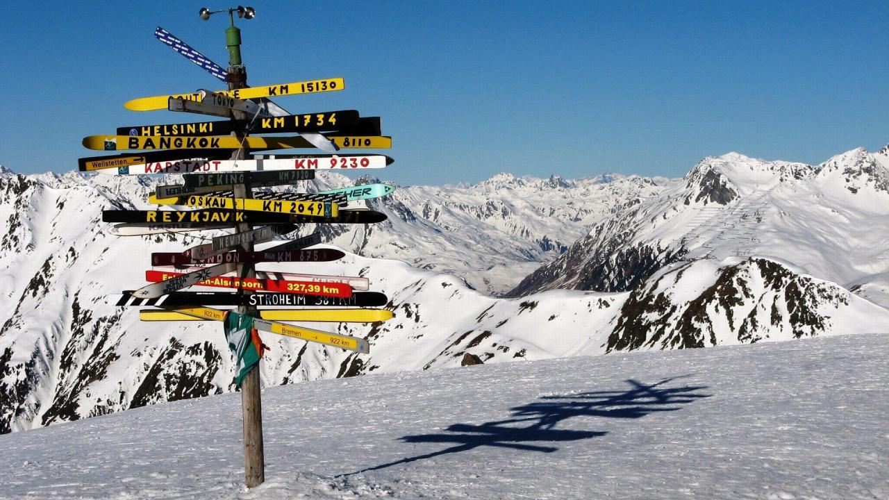 Обои Дорожный указатель на горнолыжном курорте Ишгль, Австрия