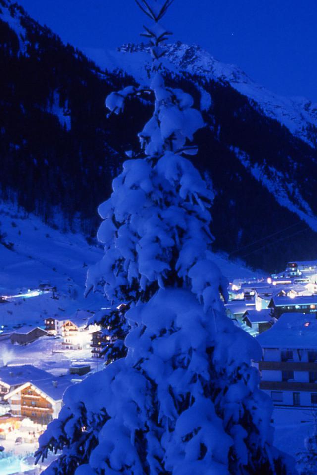 Обои Вечернее сияние на горнолыжном курорте Ишгль, Австрия
