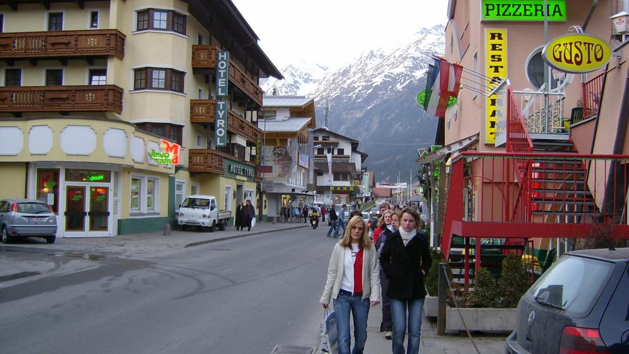 Обои Прогулка по улице на горнолыжном курорте Зёльден, Австрия